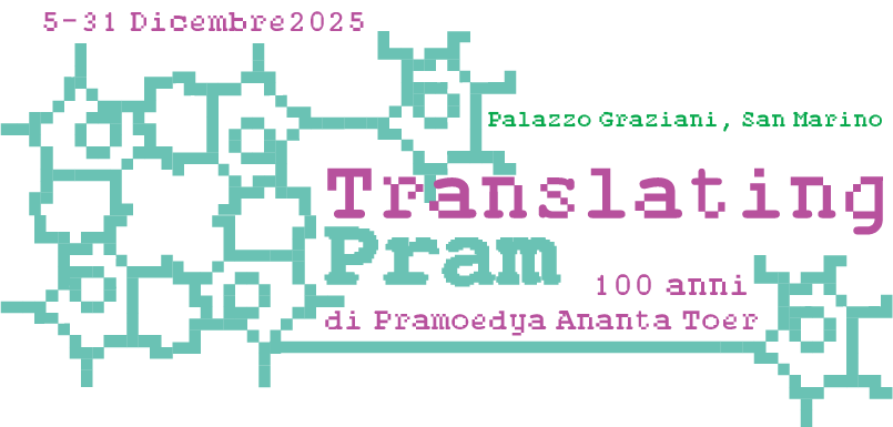 Translating Pram è un progetto curatoriale interdisciplinare, ideato dai curatori Chiara Giardi, Paola Pietronave, Berto Tukan e Moch Hasrul, in collaborazione con la Kalbis University (Indonesia), l’Università degli Studi della Repubblica di San Marino (UNIRSM) e 3 ARROWS S.c.a.r.l. Il progetto nasce per commemorare il centenario della nascita di Pramoedya Ananta Toer (1925–2006), attraverso una serie di mostre, incontri e workshop che esplorano la sua eredità intellettuale e promuovono una storiografia basata sulla cittadinanza. Con un approccio partecipativo e interculturale, Translating Pram collega le narrazioni storiche indonesiane ai contesti globali, invitando il pubblico a diventare co-autore della storia.