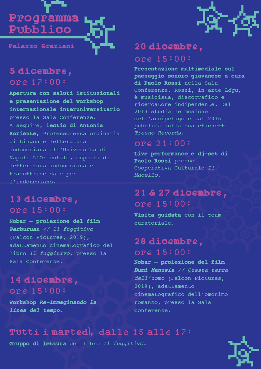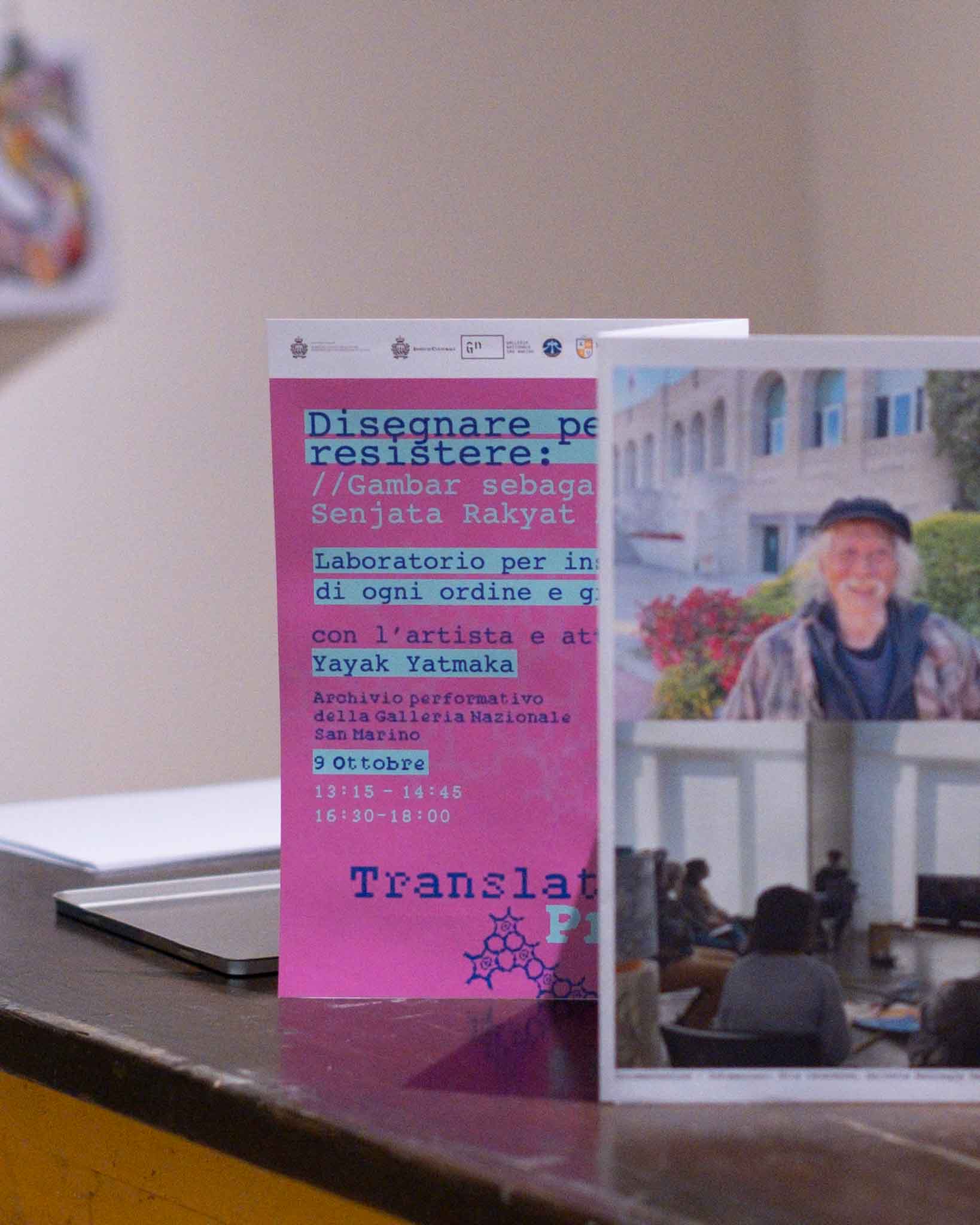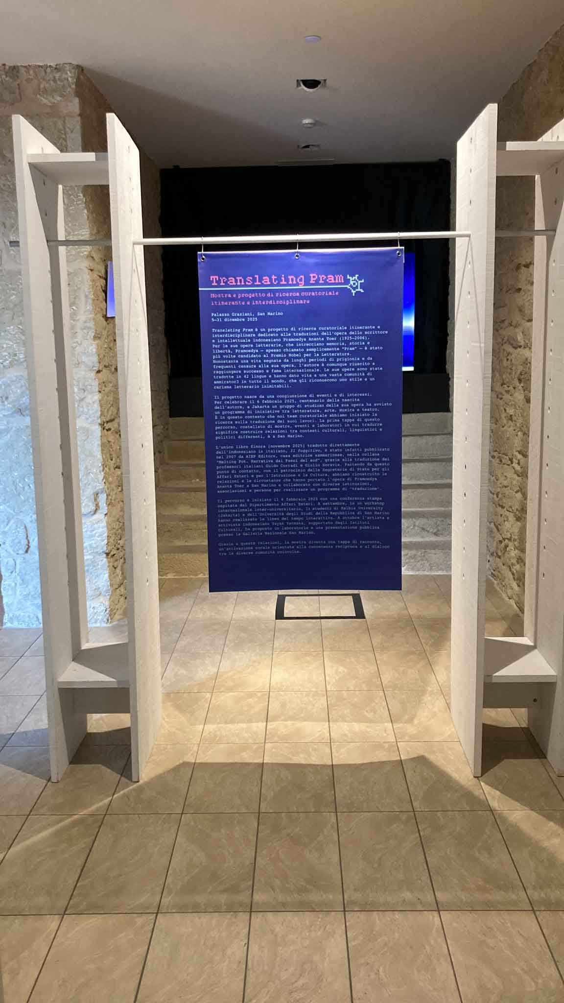 Translating Pram is a cross-disciplinary curatorial project initiated by curators Chiara Giardi, Paola Pietronave, Berto Tukan, and Moch Hasrul, in collaboration with Kalbis University (Indonesia), the University of the Republic of San Marino (UNIRSM), and 3 ARROWS S.c.a.r.l. The project commemorates the 100th anniversary of the birth of Pramoedya Ananta Toer (1925–2006) through a series of exhibitions, discussions, and workshops that explore his intellectual legacy and promote citizen-based historiography. With a participatory and cross-cultural approach, Translating Pram connects Indonesian historical narratives with global contexts and invites the public to become co-creators of history.
