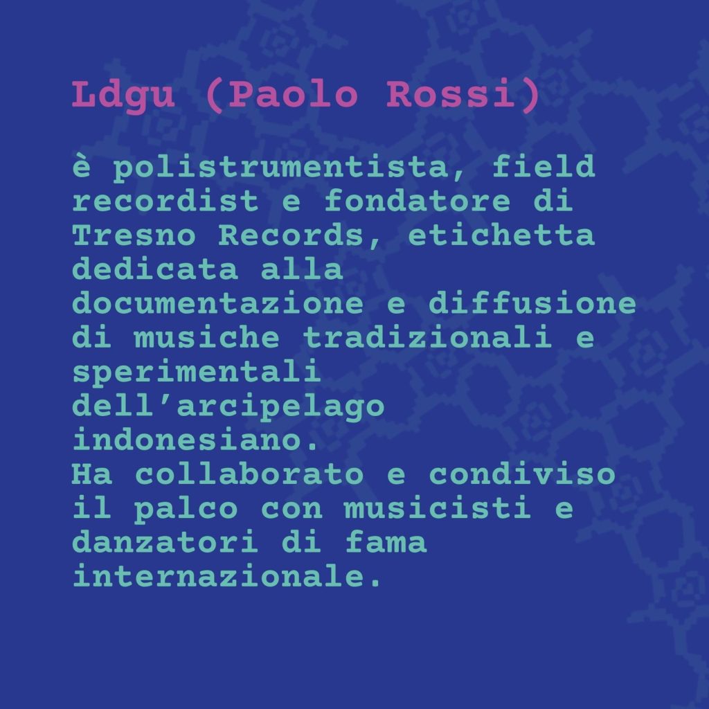 Rossi, in arte Ldgu,è musicista, discografico ericercatore indipendente. Dal2013 studia le musichedell’arcipelago e dal 2016pubblica sulla sua etichettaTresno Records.